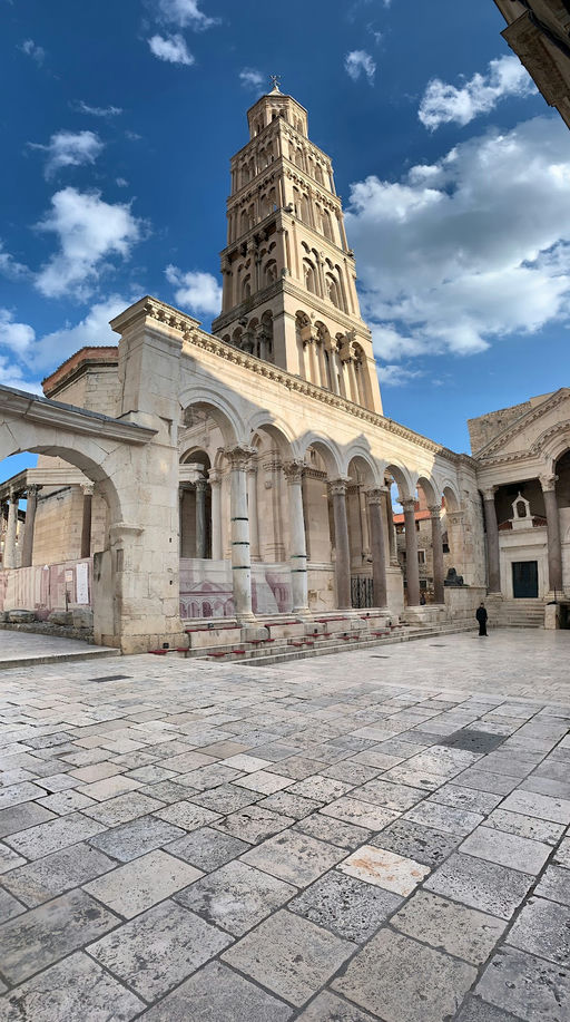 This ancient square sits at the heart of a Roman palace, surrounded by columns and stone arches that have stood for over 1,700 years. It’s a spot where history feels close, with old stones under your feet and impressive architecture all around. The area is a mix of Roman, medieval, and modern influences, making it a unique place to see how different eras blend together.